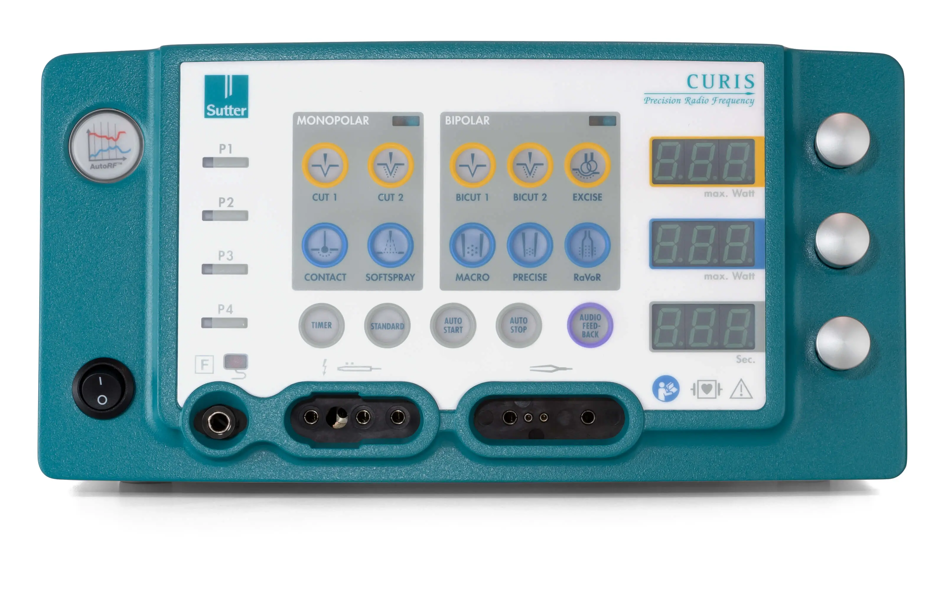 The CURIS® radiofrequency generator offers specially developed monopolar and bipolar programs for various surgical procedures. Optimized modes enable precise cutting and efficient coagulation.
